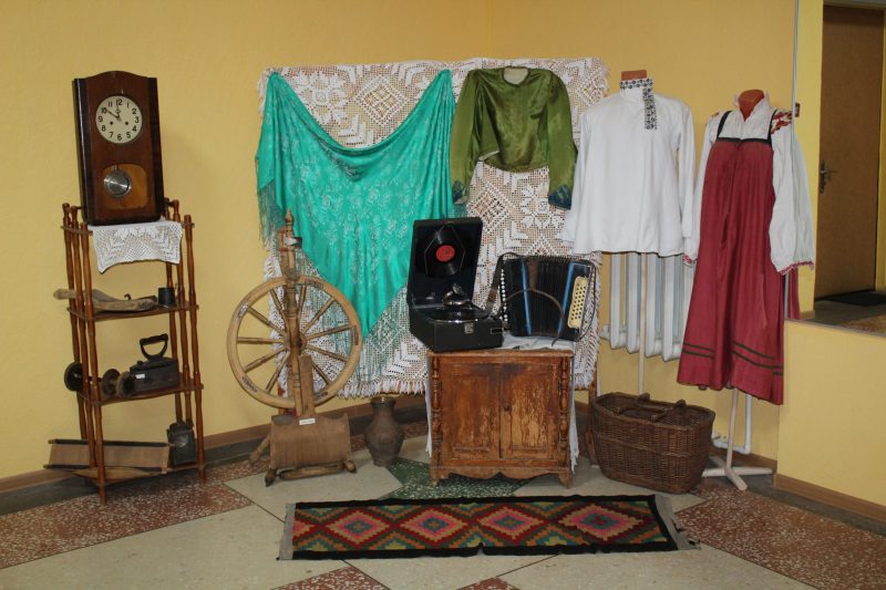 В фойе Дома культуры посетителю может показаться, что он попал в мир театрального закулисья. И избушка, и забор – все это декорации, созданные своими руками. Недавно здесь появились также большие фигуры Маши и Медведя из одноимённого мультфильма – это дело рук селян с золотыми руками, завсегдатаев кружка, которым руководит Карина Сергеевна.
