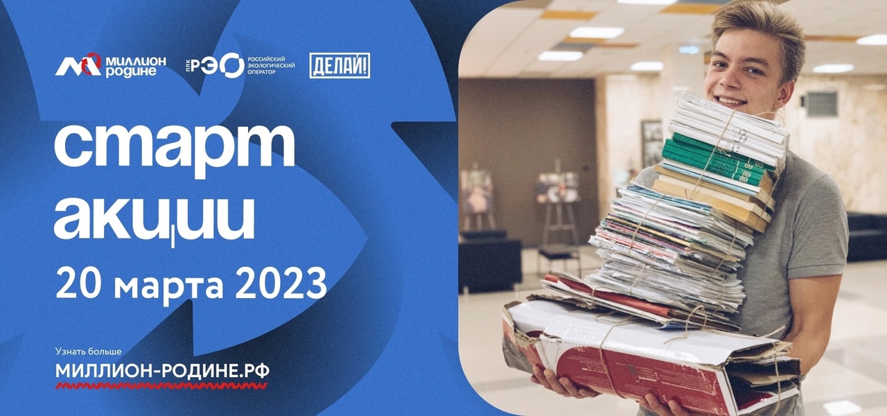 В России стартовала акция «Миллион — Родине», идейная цель которой — собрать миллион тонн макулатуры, как это делали в Советском союзе. Она пройдёт с 20 марта по 5 июня.