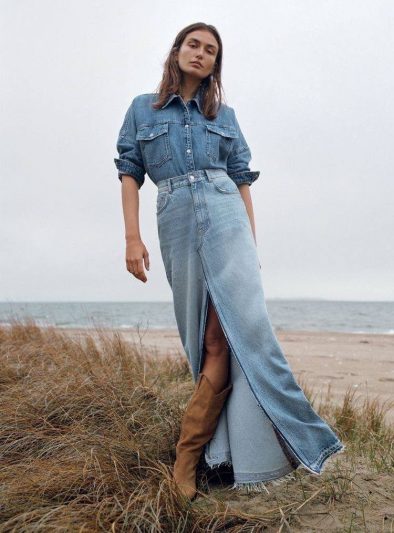 Отличный практичный вариант – образы тотал деним (одежда из плотной хлопчатобумажной ткани. – Прим. ред.). Так, популярностью будет пользоваться джинсовая юбка в длине миди и макси.