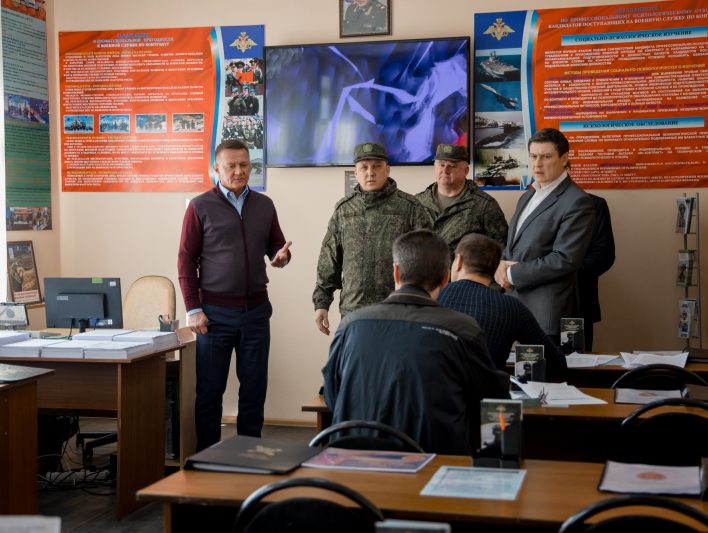 Губернатор познакомился с организацией работы пункта отбора на службу по контракту, а также пообщался с кандидатами на военную службу.