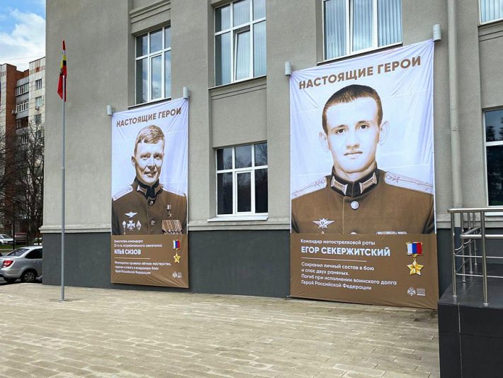 Российское военно-историческое общество передало Курску баннеры с портретами Героев России – участников специальной военной операции.