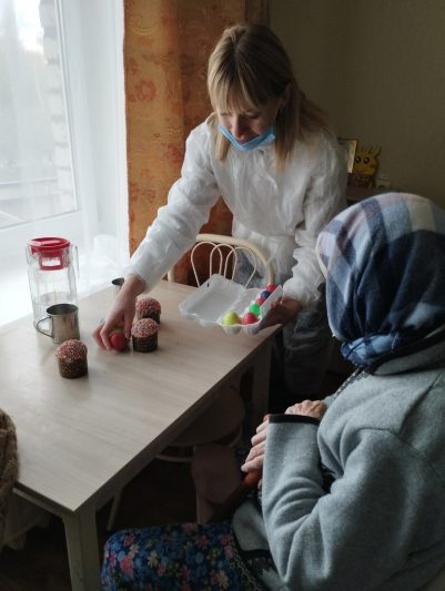 Волонтёры поздравили с Пасхой подопечных Железногорского дома-интерната ветеранов труда.