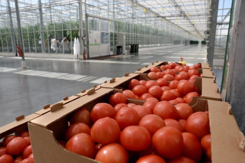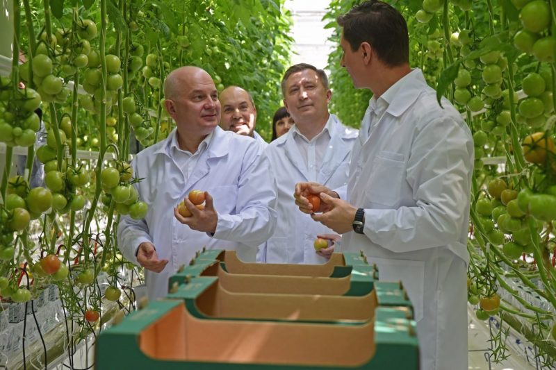 Сейчас комплекс выходит на полную производственную мощность. В марте здесь собрали первый урожай, сейчас на предприятии стабильные регулярные сборы и отгрузки томатов. Кроме того, в теплицах выращивают и огурцы. Все в планах вырастить около 296 тонн огурцов и 5 тысяч тонн томатов.