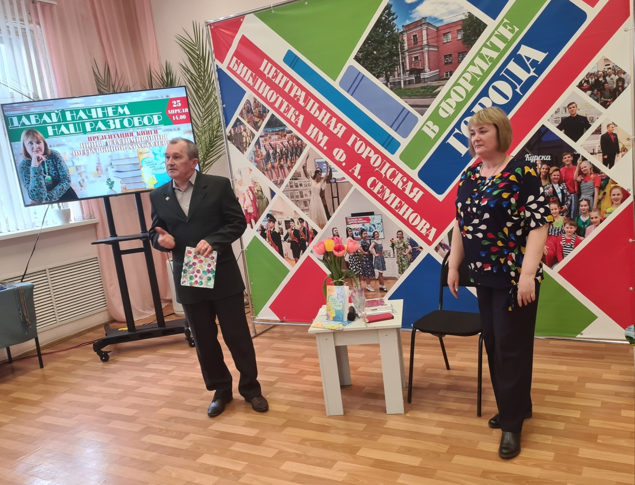 Во вторник, 25 апреля, в Курске в Центральной библиотеке имени Семёнова прошла презентация книги писательницы Нины Подтуркиной-Хрусталевой «Давай начнём наш разговор».