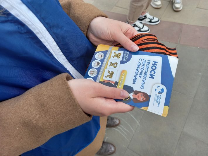 Вплоть до 9 Мая на улицах Курска и населённых пунктов области волонтёры будут бесплатно раздавать чёрно-оранжевые ленты как символ воинской доблести и славы. Всего их заготовлено более 6 тысяч штук. Вместе с ними прохожие получат и памятки о том, как правильно носить ленточку.