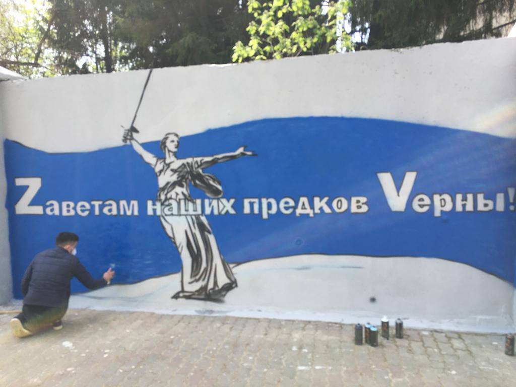 На улице Союзной, 35, ко Дню Победы появится большое изображение, отражающее связь времен и преемственность поколений защитников нашего Отечества. Над его созданием работают преподаватели и выпускники детских художественных школ №1 имени Клыкова и № 2 имени Дейнеки. Автор эскиза — директор ДХШ № 2 имени Дейнеки Сергей Гребеньков. В пресс-службе мэрии Курска отметили, что сейчас идёт цветовое оформление композиции, а его контуры уже нанесены.