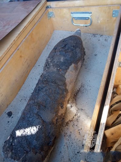 150-ти миллиметровый артснаряд был изъят и уничтожен спасателями аварийно-спасательной службы Курской области на специальном полигоне.
