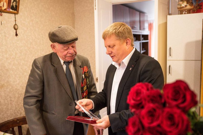 Глава администрации Железнодорожного округа Александр Дрынов вместе с заместителем председателя Курского городского Собрания Еленой Бесединой поздравили ветерана Михаила Шумакова с Днём России и вручили медаль «В память 80-летия Прохоровского сражения 12 июля 1943 года».