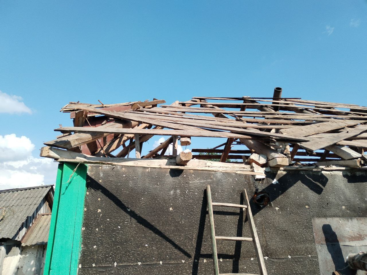 В один из домов попал артиллерийский снаряд. По счастливой случайности никто не пострадал.