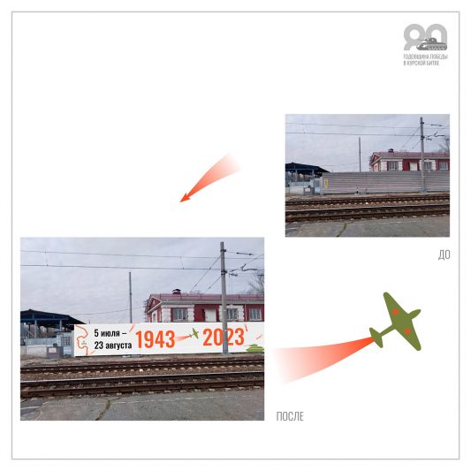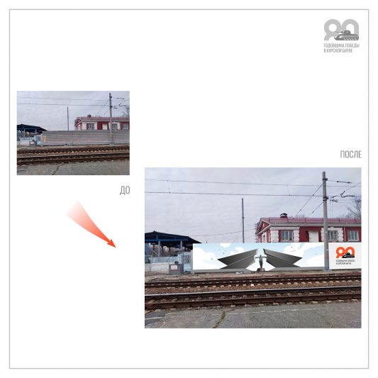 Вдоль железнодорожных путей в Курске разместят информацию о героях-курянах, принимавших участие в Курской битве. Здесь появится изображение мемориального комплекса, который возводится сейчас в Поныровском районе. Рисунки разместят на 47 секциях общей длиной 282 метра.