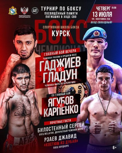 13 июля в Курске в спортивной школе бокса на улице Косухина, 25А пройдет турнир по боксу (6+), посвященный памяти военнослужащих, погибших в ходе СВО.