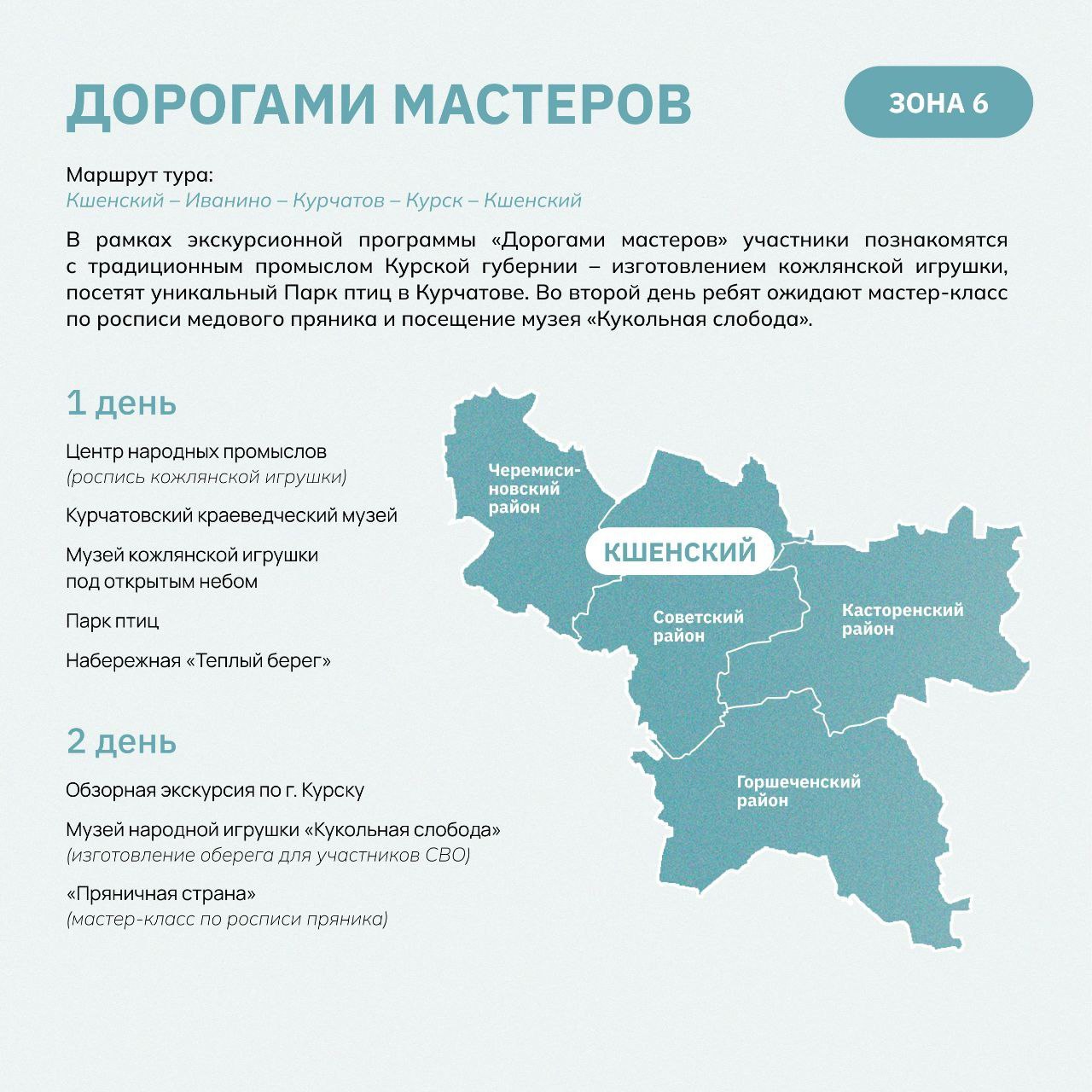 Дети отправятся в экскурсионную поездку, разработанную для той территориальной зоны региона, где они проживают или учатся. Для получения сертификата родителям необходимо обратиться в МФЦ по месту жительства. Как выглядят эти маршруты, смотрите на карточках.