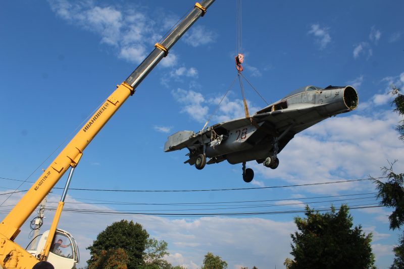 В парк Победы поселка Конышевка сегодня доставили самолет-истребитель «МиГ – 29». Он прибыл из воинской части поселка Халино на постоянное место дислокации.