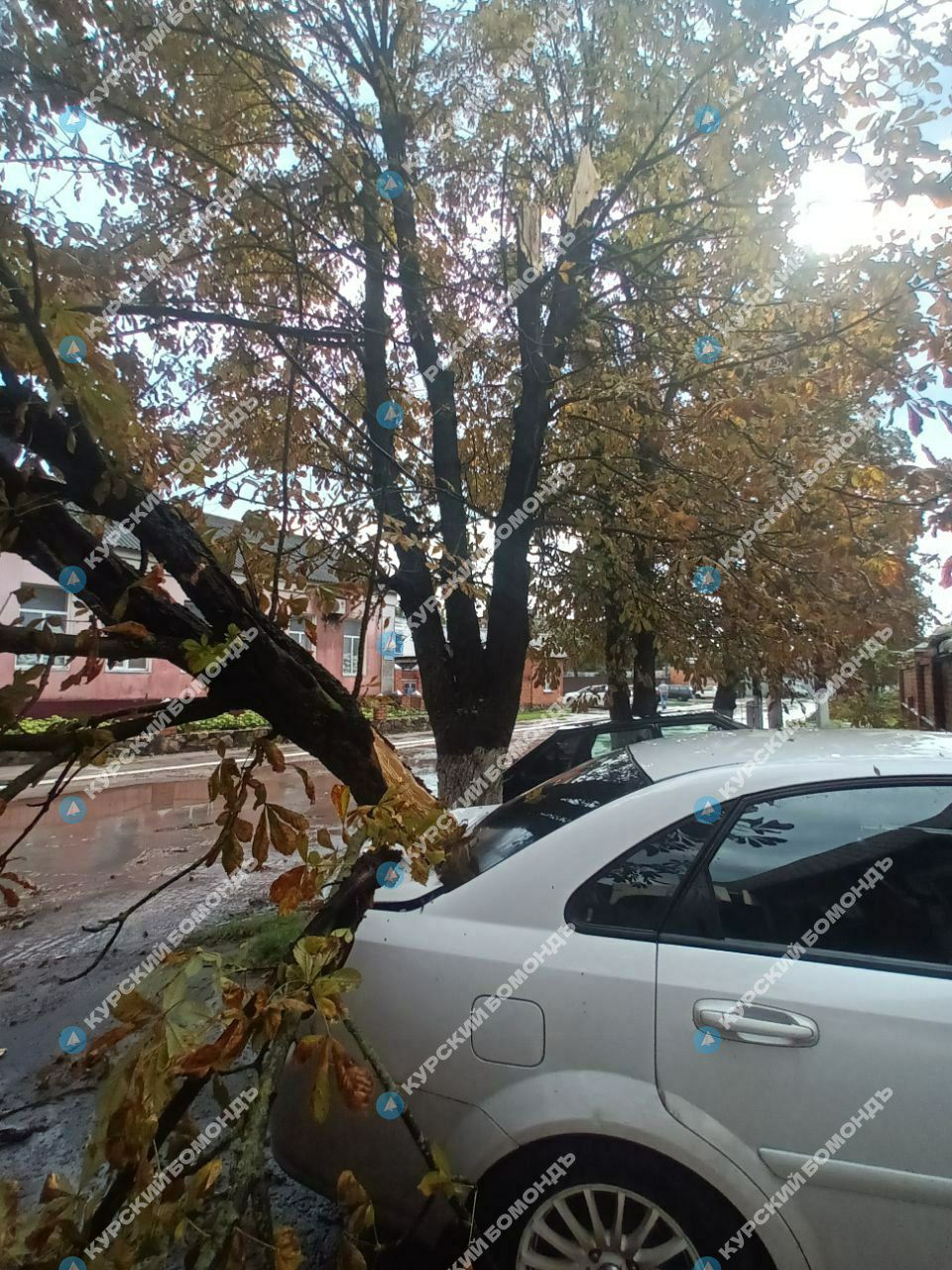 Местные жители сообщают, что стихия повалила деревья, оборвала провода. Как минимум один легковой автомобиль получил повреждения.