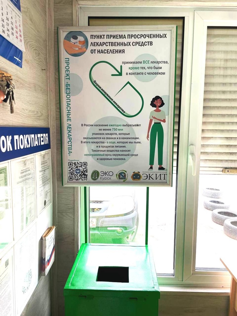В Курске на базе «ЭкоДома» на улице Сумской, 46 появился контейнер для приёма просроченных лекарств. Проект стал продуктом партнёрства экодвижения «ЭкоКурск», спецавтобазы по уборке города Курска и самарской компании «ЭКИТ».