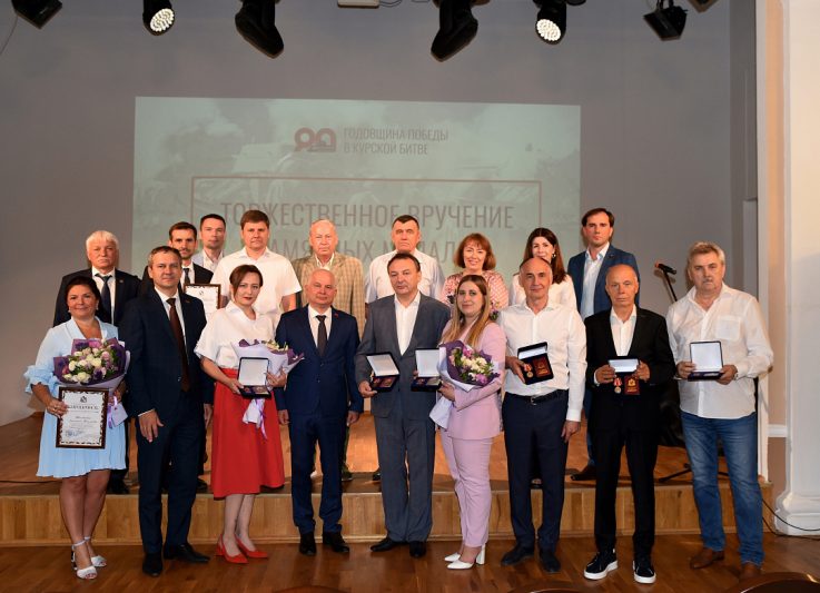 В концертном зале «Свиридовский» состоялось торжественное вручение памятных медалей в честь 80-летия победы в Курской битве руководителям предприятий региона.