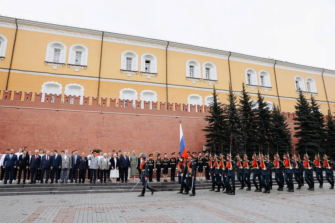 В Александровском саду состоялось возложение венков к Могиле Неизвестного Солдата и корзин с цветами к стеле в честь городов воинской славы России.