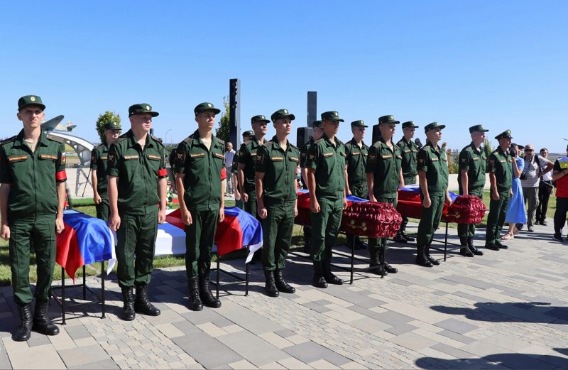 На мемориальном комплексе «Самбекские высоты» в Ростовской области с воинскими почестями перезахоронили бойцов Великой Отечественной войны. В их числе – два офицера, погибшие в Курской битве. Их останки были подняты поисковым отрядом «Курган» в Поныровском районе в 2019 и 2022 годах. Оба были призваны в Ростовской области.