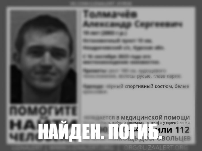 На протяжении трёх дней поисковики отряда «Лиза Алерт» разыскивали 19-летнего Александра Толмачёва. Молодой человек пропал 16 сентября в Ноздрачевском сельсовете в районе остановки 13-й километр.