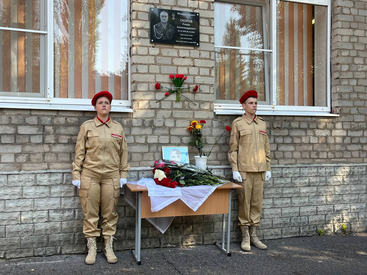 В Курске на стене школы №39 открыли мемориальную доску в память о павшем участнике СВО Романе Скорове.