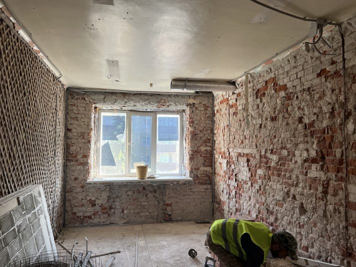 Здание поликлиники является объектом культурного наследия регионального значения, поэтому соблюдение регламента проведения работ крайне важно для сохранности облика постройки и её долговечности. Сейчас бригады завершают демонтаж, он выполнен на 95%. Ведутся штукатурные работы, монтаж электропроводки и системы вентиляции. Строители занимаются устройством чернового пола из деревоплиты и ремонтом кровли. Как сообщили в Правительстве Курской области, завершить обновление здания планируется в конце декабря этого года.