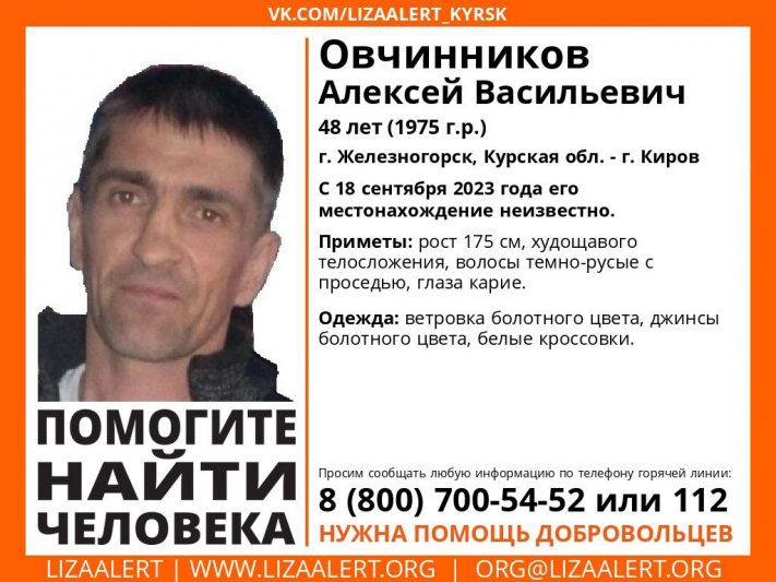 В Курской области пропал 48-летний мужчина. Алексей Овчинников ушёл из дома 18 сентября и с тех пор не выходит на связь с близкими.