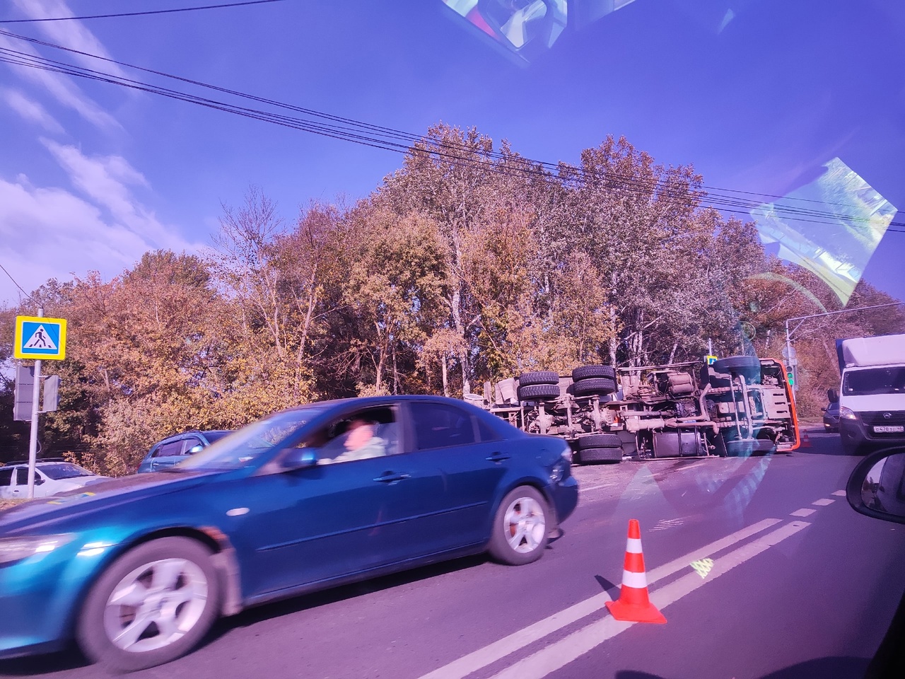 Очевидцы сообщили, что в сторону улицы Малых собирается пробка, так как перевернувшийся «КамАЗ» перекрыл часть дороги.