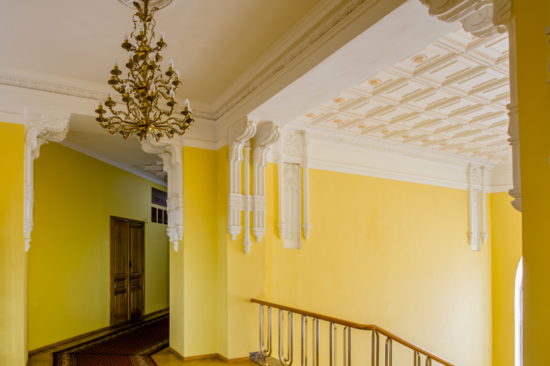 По меркам 1913 года здание было оборудовано самым современным образом: центральное отопление, канализация, автоматический насос для воды, электричество. Второй этаж был предназначен для операций Дворянского банка, а само здание было рассчитано на 150 служащих.