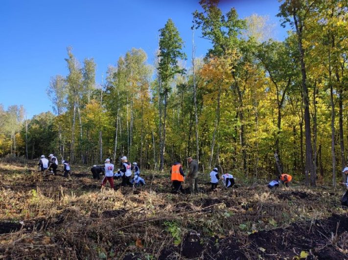 Участники высадили 1300 сеянцев дуба на площади 0,7 гектара. Акция завершилась экскурсией по музею Золотухинского лесничества.