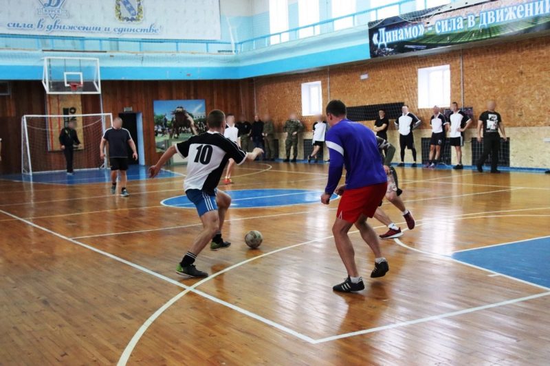 За соблюдением правил товарищеского футбольного матча внимательно следил спортивный судья спорткомплекса. Во время двух таймов по 30 минут силовики штурмовали половину поля соперников.