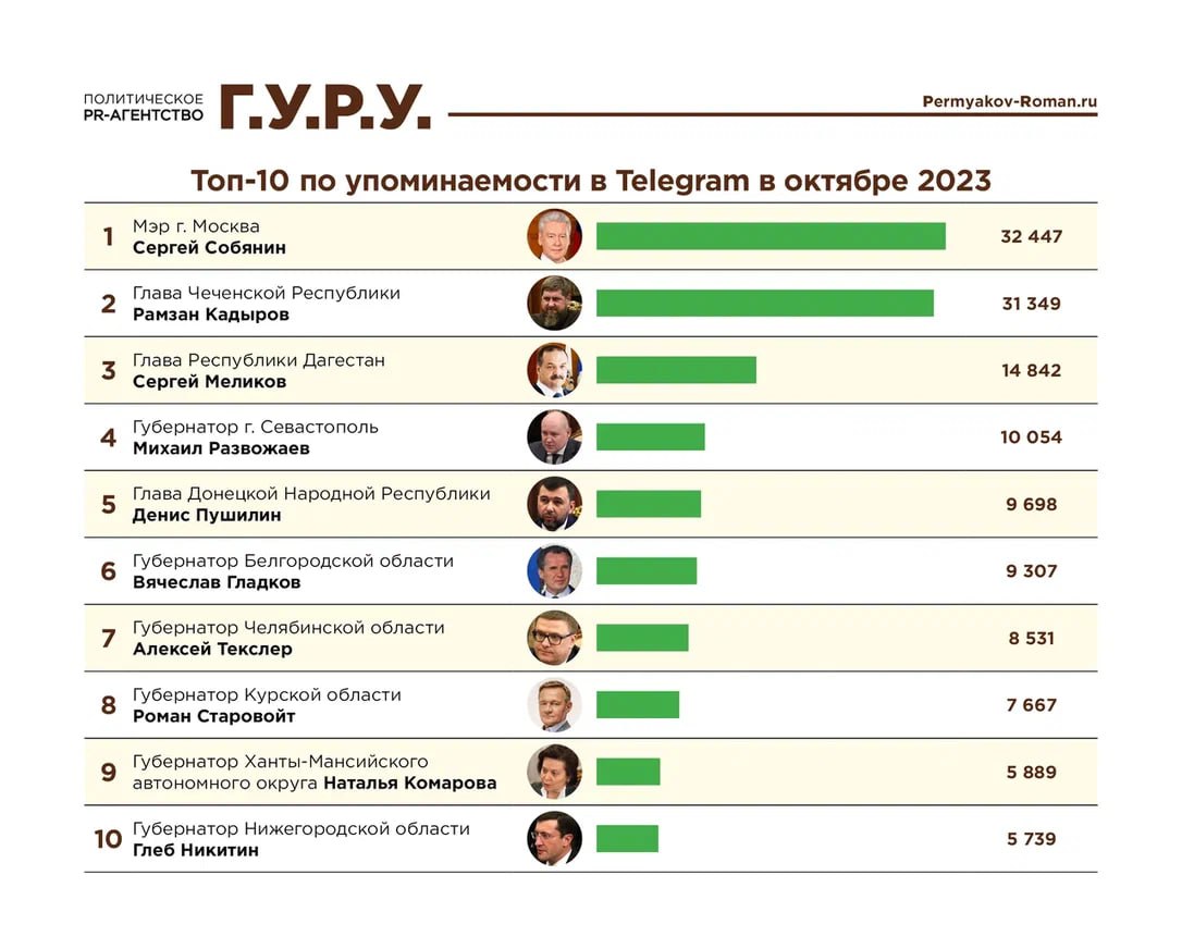 Эксперты политического агентства «Г.У.Р.У.» создали рейтинг российских политиков по их упоминаниям в Telegram-каналах. Губернатор Курской области Роман Старовойт расположился на восьмом месте — 7667 упоминаний в мессенджере. Большая часть из них связана с обстрелами региона со стороны Украины. Однако необходимо отметить, что Роман Старовойт в своем канале публикует видео и фотографии с мест событий, а также рассказывает о принятых решениях по тем или иным вопросам.