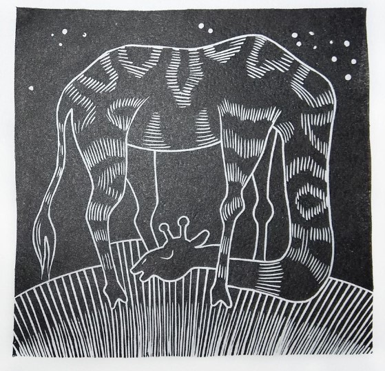 Ряд работ находится в частных коллекциях в России, Киргизии, Польше, Франции, США. В экспозиции представлены итоги последних лет творчества: линогравюры, рисунки карандашом и гелиевой ручкой, оттиски тушью и акварелью.