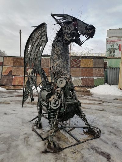 Накануне Нового года в парке металлических монстров в Курске появилась новая фигура — железный дракон. Он не только внушительно выглядит, но и умеет дышать огнём, как успели увидеть куряне, побывавшие на фаер-шоу по случаю открытия новой фигуры.