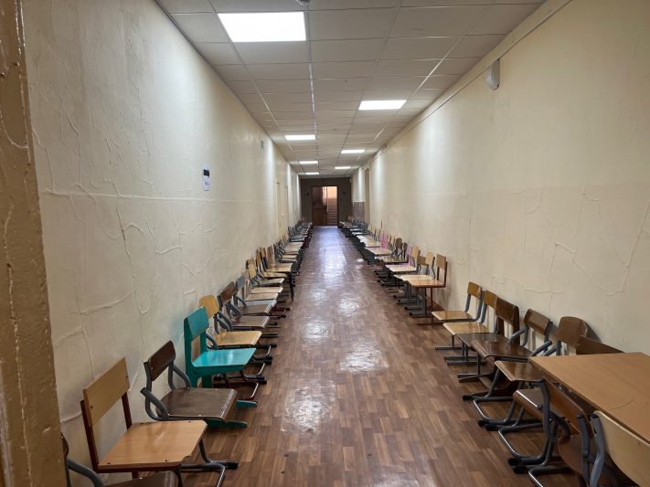 Перед началом экзамена ППЭ проверил кинолог с собакой. Подготовлено специальное помещение на случай возникновения ракетной опасности или опасности атаки беспилотника.
