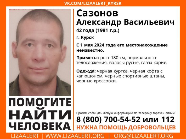 В Курске пропал 42-летний Александр Васильевич Сазонов. С 1 мая его местонахождение неизвестно.