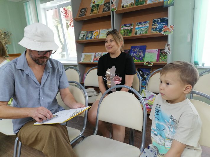 Курянин Дмитрий Солодов представил гостям библиотеки имени Воробьёва свои работы.