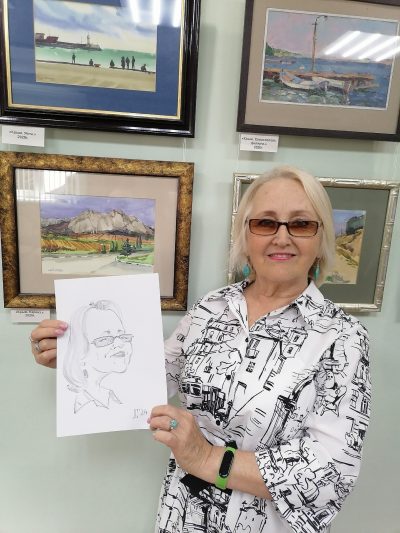 Перед открытием художник изображал гостей. Говорит, что за одно мероприятие создаёт порядка тридцати шаржей.