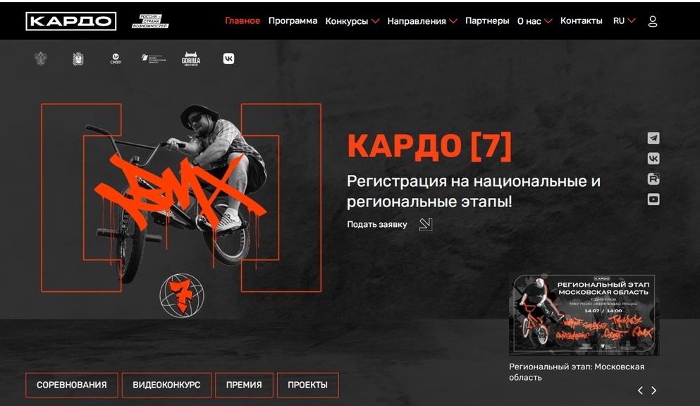 Жители Курской области могут стать участниками 7-го сезона ежегодной Международной конкурс-премии уличной культуры и спорта. Ее проводит благотворительный фонд «КАРДО» с целью выявления и поддержки талантов уличной культуры и спорта, формирования единой системы взаимодействия индустрии улиц, общества и государства для реализации молодежной политики.