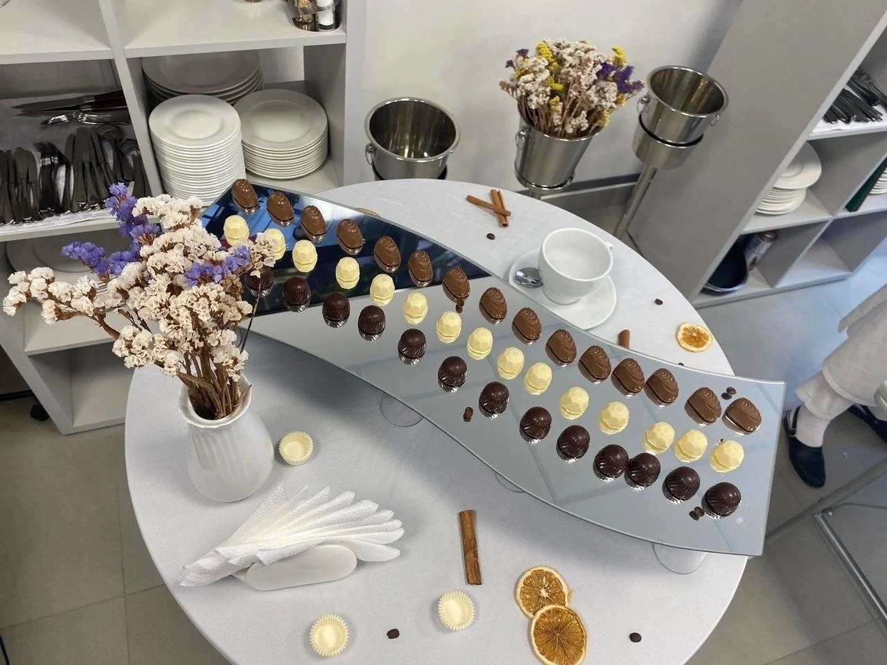 — Шоколад — это не только привычный большинству продукт в виде плиток и конфет, но и фантазийный элемент декора. Существует множество нюансов, которые могут повлиять на вкус и вид кондитерского изделия. Поэтому на начальном этапе знакомства с шоколадом студенты изучают его характеристики, температурные режимы обработки, и начинают с изготовления простых шоколадных изделий с помощью молдов — специальных форм, — рассказала преподаватель спецдисциплин Диана Алёшина.