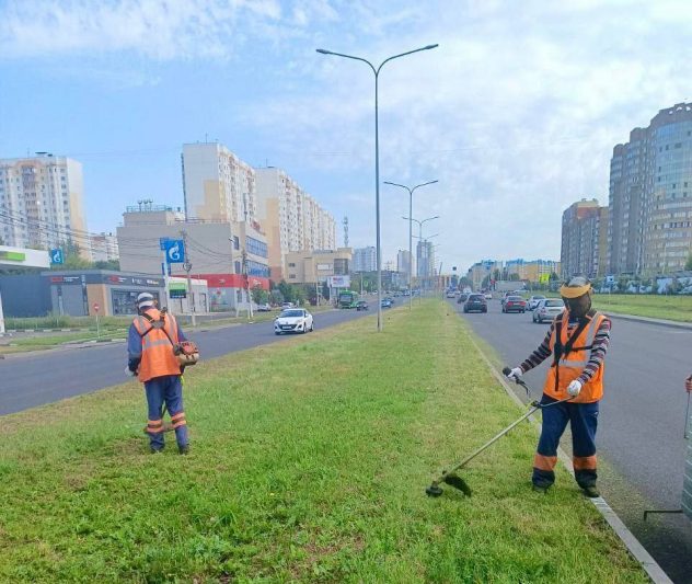 Сегодня работники подрядных организаций, вооружившись триммерами и газонокосилками, вышли на участки, которые уже пора покосить. В помощь им задействовали технику.