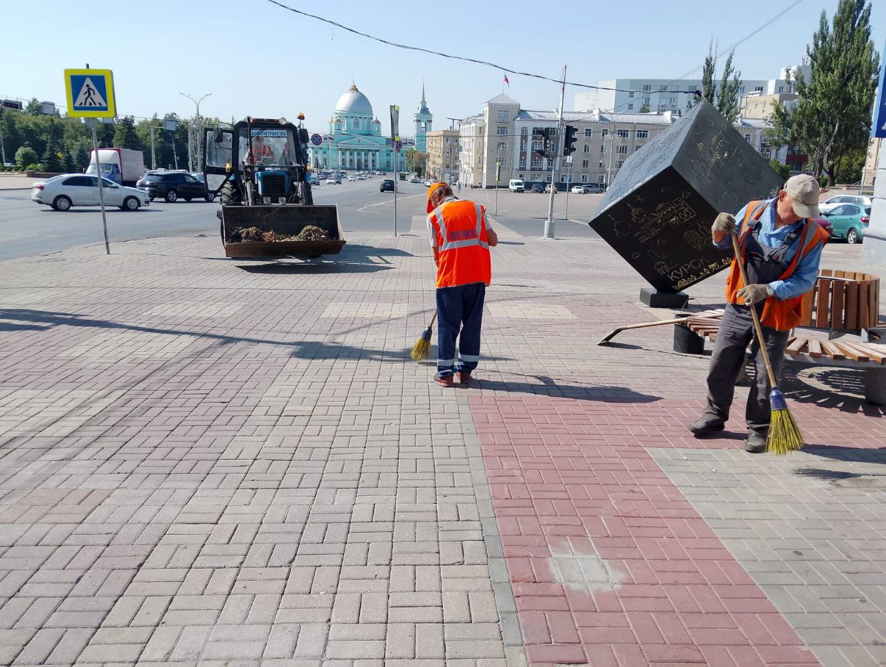 Специалисты приводят в порядок проезжую часть, тротуары и остановки общественного транспорта.