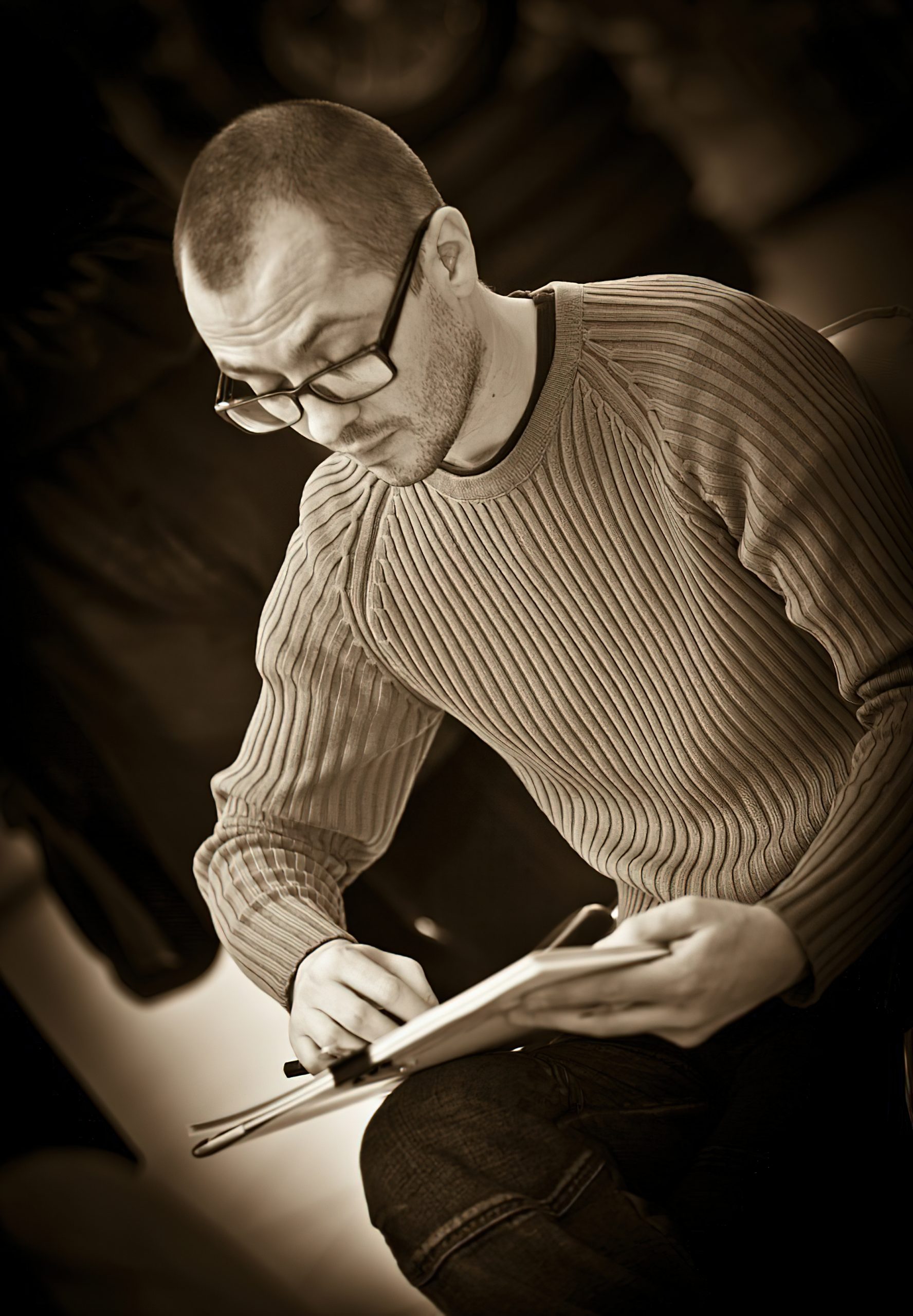 Дмитрий Солодов – счастливый человек. Он из тех, у кого любимое дело и профессия совпадают. «Им не приходится работать ни одного дня», – говорят о таких людях в шутку. Впрочем, в этой шутке почти всё – правда. Выпускник худграфа КГУ, он занимается живописью и рисует шаржи. Причём рисует постоянно – везде, где приходится бывать. За одно мероприятие художник создаёт порядка тридцати работ.