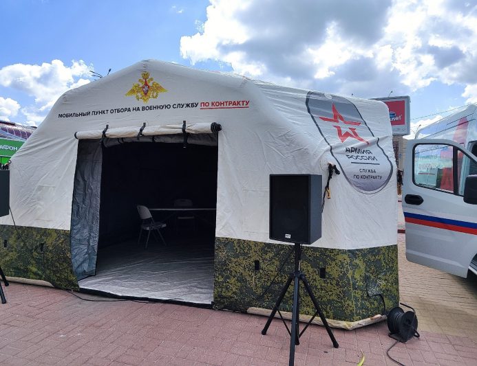 Мобильный пункт отбора на военную службу по контракту продолжает курсировать по микрорайонам Курска. Сегодня, 2 августа, он разместился на площади перед торговым центром «Олимпийский» на пересечении улиц Дзержинского и Верхней Луговой.