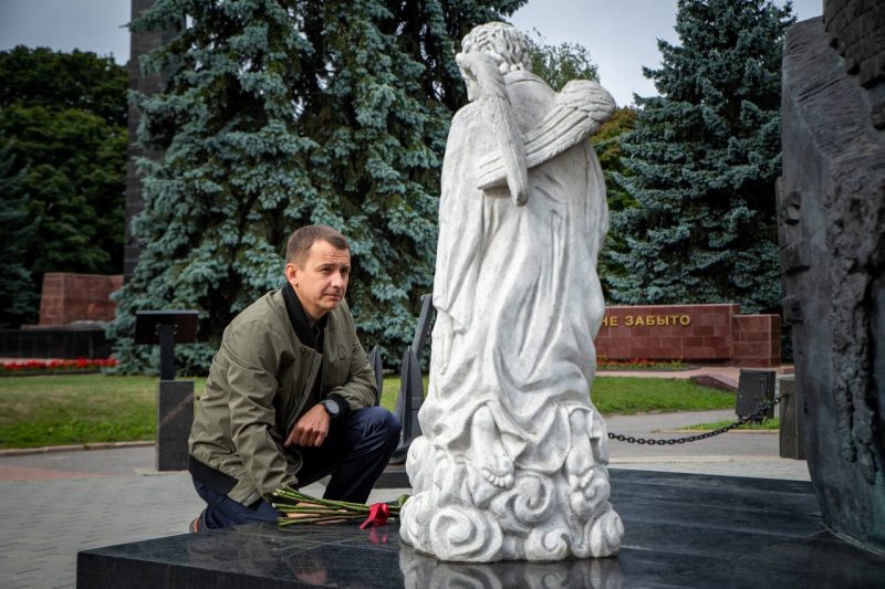 Градоначальник возложил цветы к памятному знаку с именами погибших моряков.