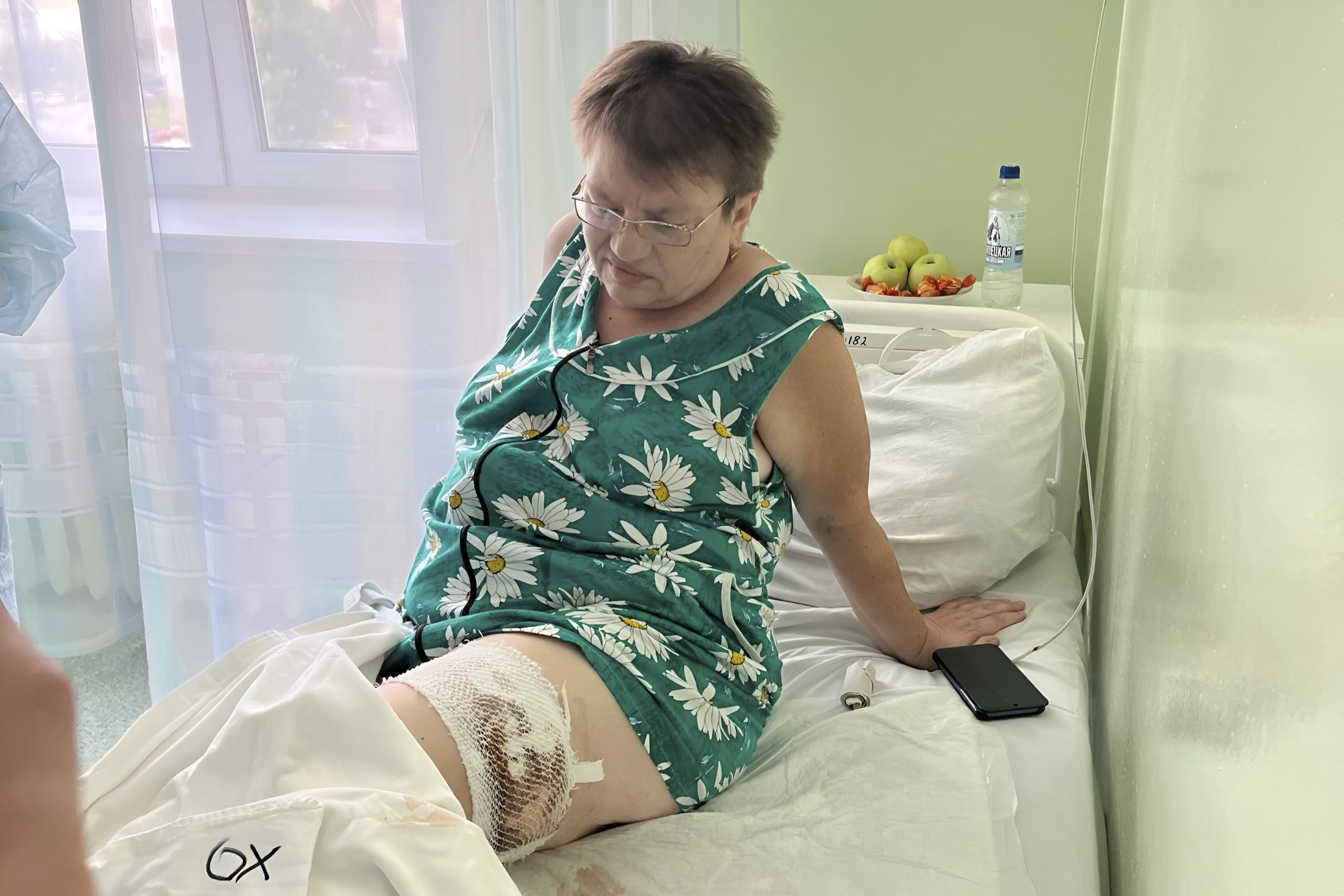 – Довезли до кольца, а там посадили в машину Скорой помощи. Девочки, которые помогали мне, быстро среагировали, поставили капельницу, померили давление. Так я и попала в областную больницу. А здесь – полное приёмное отделение раненых, все плачут, – рассказывает женщина. – Меня попросили не волноваться, сказали, что будет операция. Доктор сказал: «Вы женщина боевая, поэтому вытерпите». Уже иду на поправку, всё заживает, вчера меня хирург осматривал.