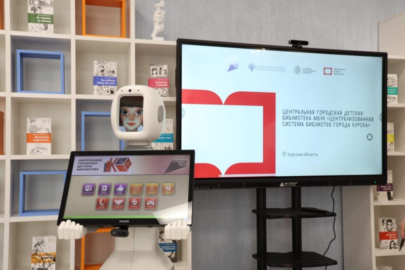 Встречать посетителей будет робот «Кира». Она поможет в навигации, проведёт экскурсии или просто поговорит с читателями на разные темы. В библиотеке установлен терминал самообслуживания, через который можно брать и возвращать книги.