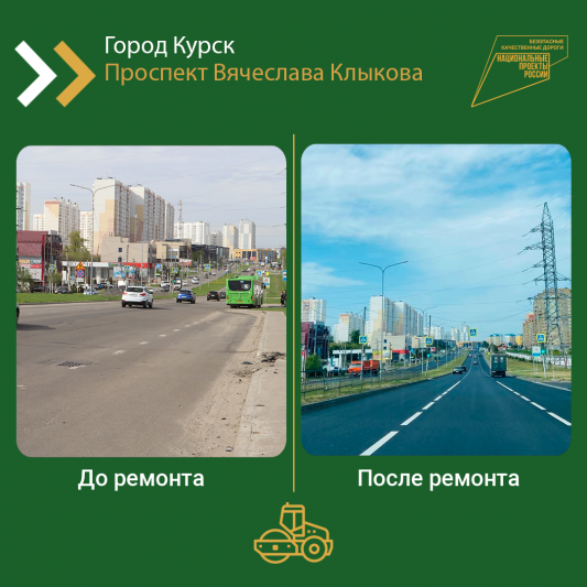 По нацпроекту «Безопасные качественные дороги» в регионе отремонтировали более 69 километров автодорог регионального и межмуниципального значения, причём более 42 из них — непосредственно в Курске.