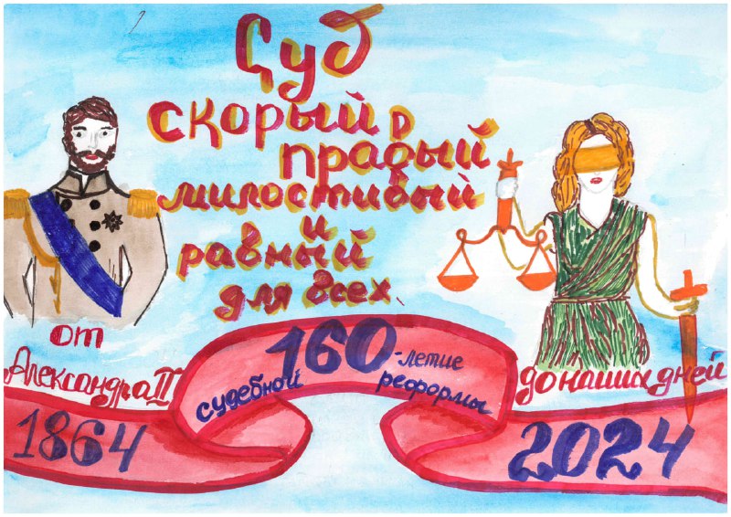 В Курском областном суде подвели итоги конкурса детских работ, посвященных 90-летию Курского облсуда и 160-летию судебной реформы в России. Творческие работы представили 27 детей судей и сотрудников аппаратов судов Курской области. Организаторы конкурса — Курский областной суд, Курское региональное отделение Российского объединения судей. Ребята соревновались в трёх номинациях: «Рисунок», «Стихотворение», «Проза».