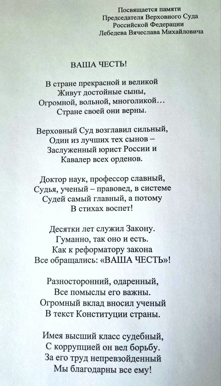 — Юные художники, поэты и писатели проявили не только творческие способности, но и знание истории судебной системы России, — отметила руководитель Объединенной пресс-службы судебной системы Курской области Анна Полянская. — В номинации «Стихотворение» победу одержал 16 -летний Денис Васенев (Кореневский районный суд), посвятивший своё произведение памяти Председателя Верховного суда РФ Вячеслава Михайловича Лебедева. Лучшим рисунком жюри признало работу 12- летней Вероники Деменковой (Рыльский районный суд), а в номинации «Проза» победил 15-летний Олег Понарин (Суджанский районный суд).