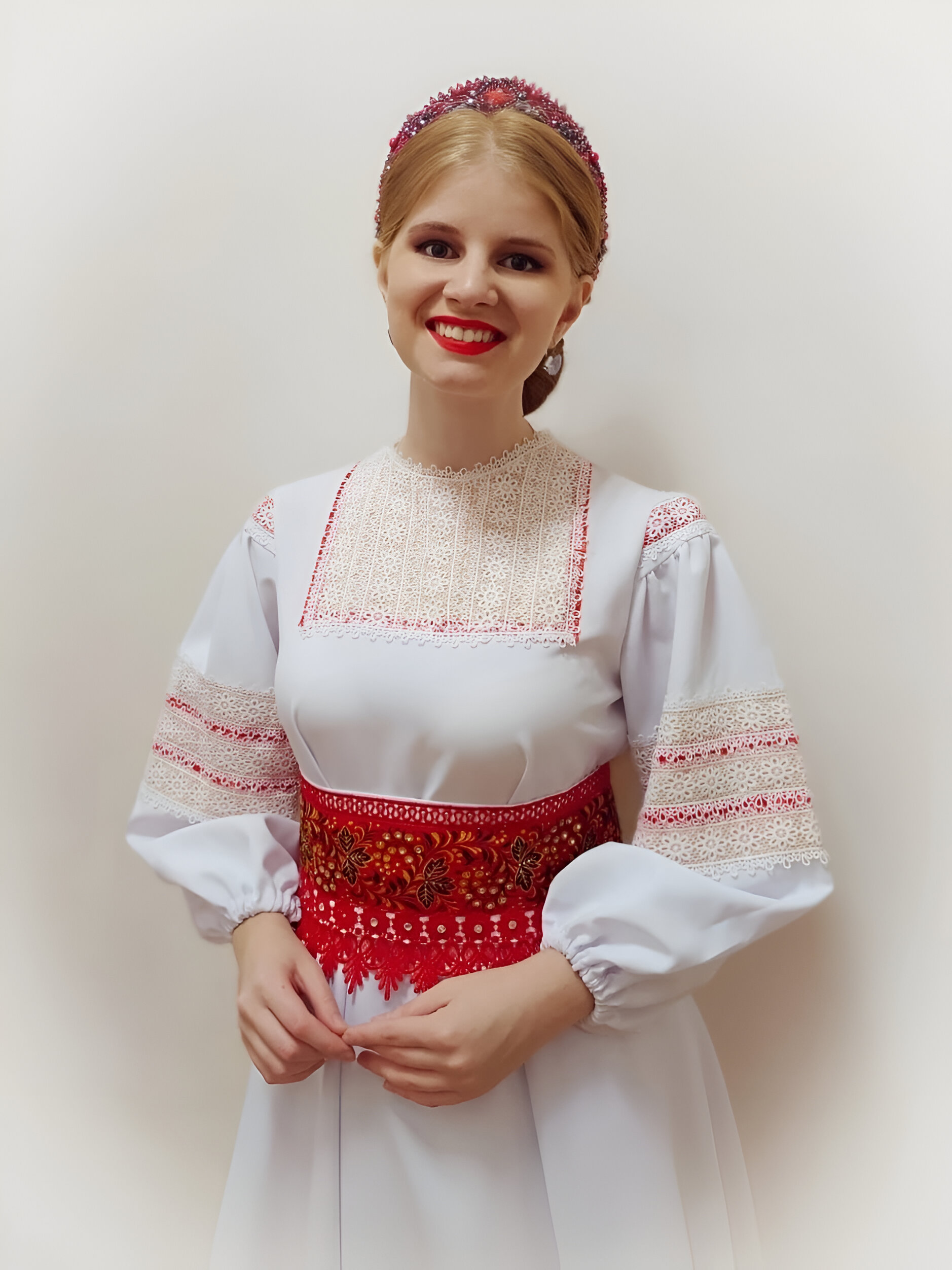 – У меня очень музыкальная семья. Петь любили все – родители, бабушка с дедушкой, они обожали песни Анны Герман, Валентины Толкуновой, Ольги Воронец. Мои бабушка и дедушка – Алла Ивановна и Иван Иванович – познакомились на танцевальной площадке. Дедушка часто рассказывает, как увидел красавицу и сразу влюбился. Вот уже 61 год дедушка и бабушка вместе, они очень любят друг друга. Я очень люблю слушать, когда они поют в два голоса. В детстве я тоже им подпевала, и мама заметила, что у меня хорошо получается. Я стала выступать на школьных мероприятиях, в музыкальной школе начала учиться по классу гитары, а народным пением увлеклась всерьёз в 14 лет. Однажды после моего выступления на районном смотре художественной самодеятельности ко мне подошла педагог по вокалу и посоветовала серьёзно заняться пением. Потом я начала заниматься в ДШИ при музыкальном колледже имени Свиридова, а после стала солисткой в детском коллективе «Тимоша».